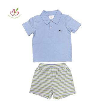 Verano más nuevo niños trajes de dos piezas bordado Polo-camisa pantalones cortos a rayas conjuntos de ropa para niños ropa de boutique personalizada para bebés