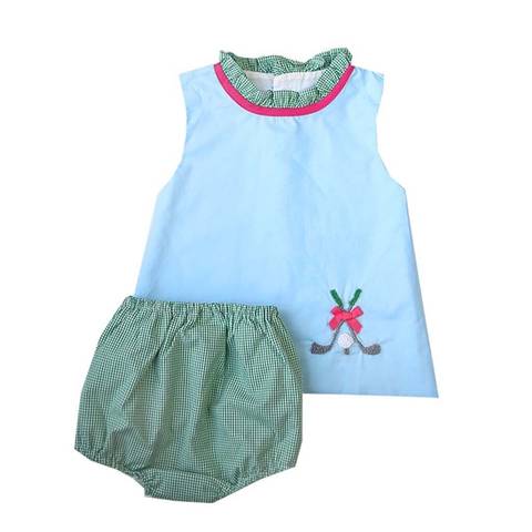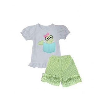 Conjunto de ropa bonita para niña pequeña, pantalones cortos con volantes de guinga para bebé, conjunto de ropa de Boutique con apliques de diseño personalizado