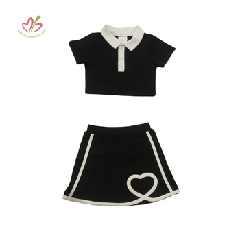 Ropa deportiva personalizada para niños Sweet Heart, ropa para niñas, polos de golf informales, conjunto de falda acampanada de verano para niños