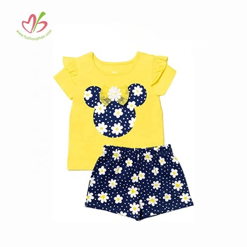 Conjunto de camiseta y pantalones cortos para niñas, con apliques de ratón, trajes para recién nacidos, ropa de manga corta con volantes con estilo, a precio de fábrica