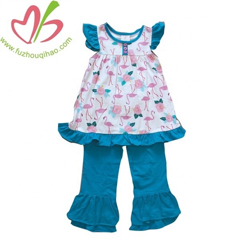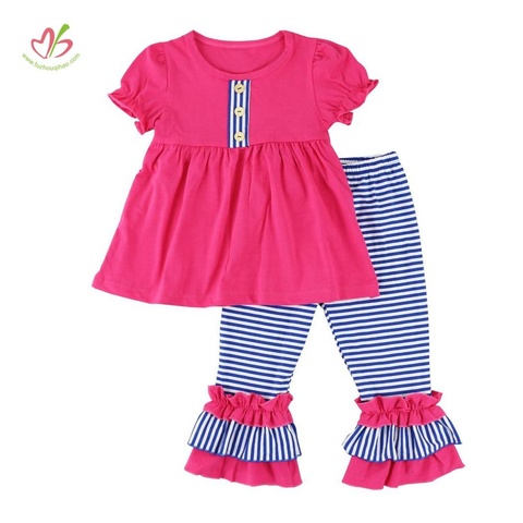 Groothandel Streep Schattige En Mooie Katoenen Boetiek Meisje Kleding Set Capris Broek Set